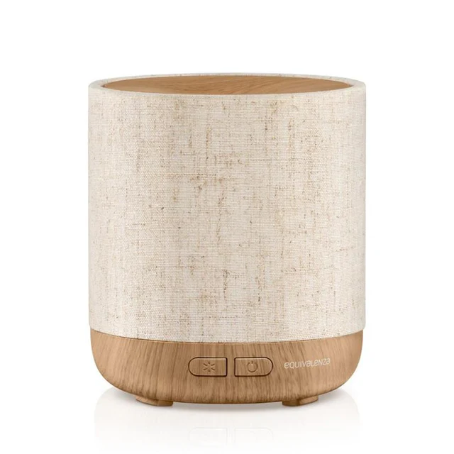Electric aroma diffuser with linen and wood-look finishes that adds warmth to your home. Ultrasonic technology diffuses the fragrance of Equivalenza water-soluble essential oils evenly and consistently throughout the room with a relaxing mist of cool vapor. This diffuser not only perfumes the air and creates a sense of well-being, but also stimulates the senses by combining the fragrance with soft ambient light.