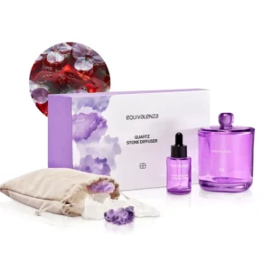 This diffuser, adorned with quartz and amethyst stones, boasts an innovative and aesthetically charming design, transforming your corner into a haven of well-being. Let small spaces tell big stories by filling them with the aroma of Black Vanilla.
